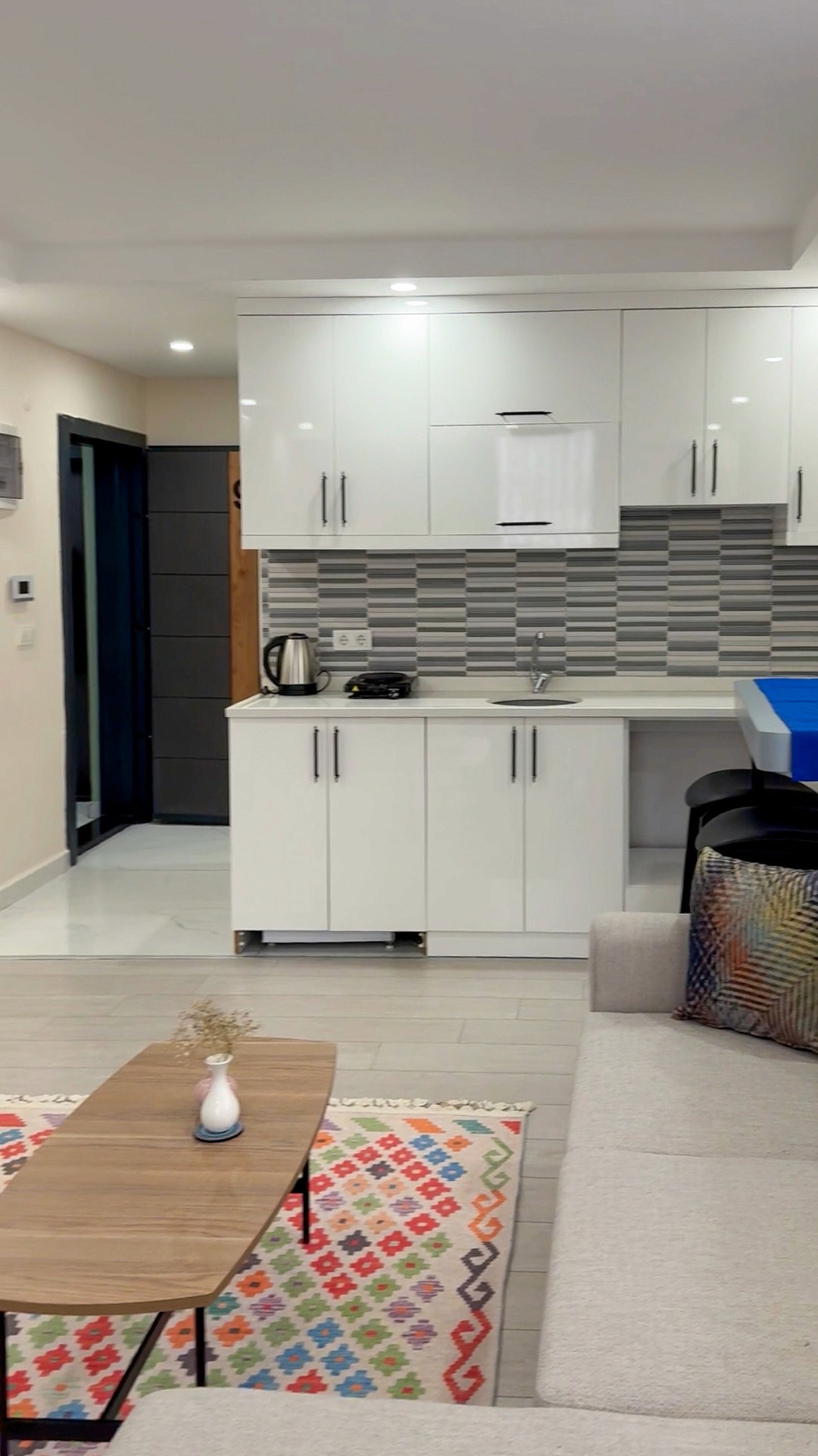 Our studio apartment offers a modern and functional living space, ideal for both short-term and long-term stays. With a double bed, seating area, and essential kitchen equipment, it provides a comfortable and practical stay. The apartment is thoughtfully designed to meet daily living needs and offers a simple and peaceful atmosphere.